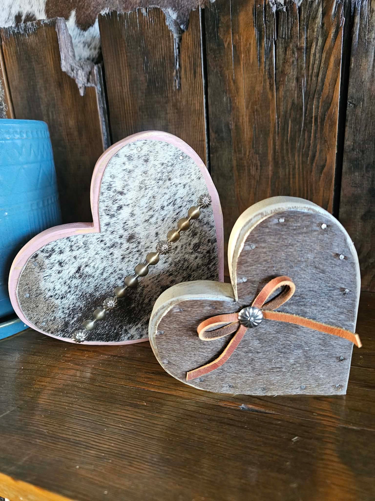Each Roxy heart (7x7.25") is handcrafted with painted wood and genuine hair-on cowhide - the kind of Valentine's decor that works year-round because it's equal parts rustic and romantic.