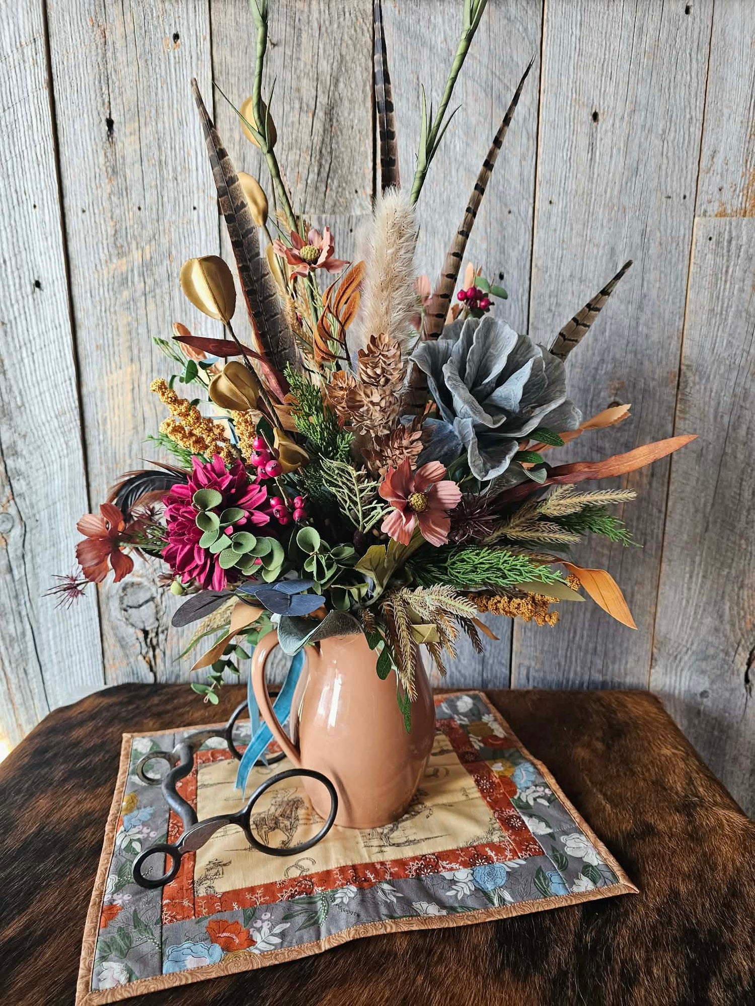 This vintage brown pitcher is gorgeous. I filled it with those red-ish berries and earth tones that make winter feel warm instead of bleak.